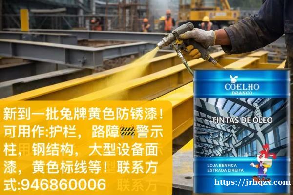 新到一批兔牌黄色防锈漆! 可用作:护栏,路障警示柱,钢结构,大型设备面漆,黄色标线等