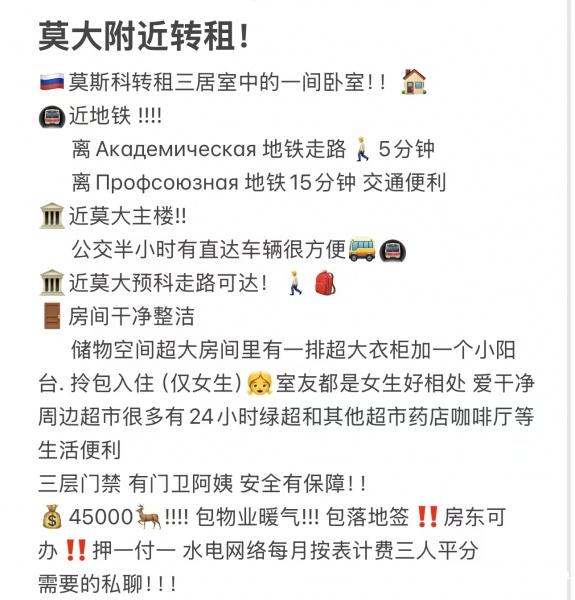 莫斯科房屋出租信息