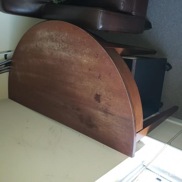 手工實木櫃檯桌後面可儲物 寬36"x17" 高 28” 帶輪子 $12元 鐵折椅 $10元,