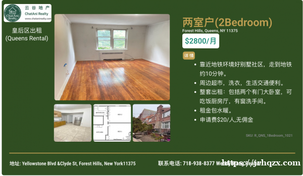 ① 皇后区 Forest Hills 两室整租